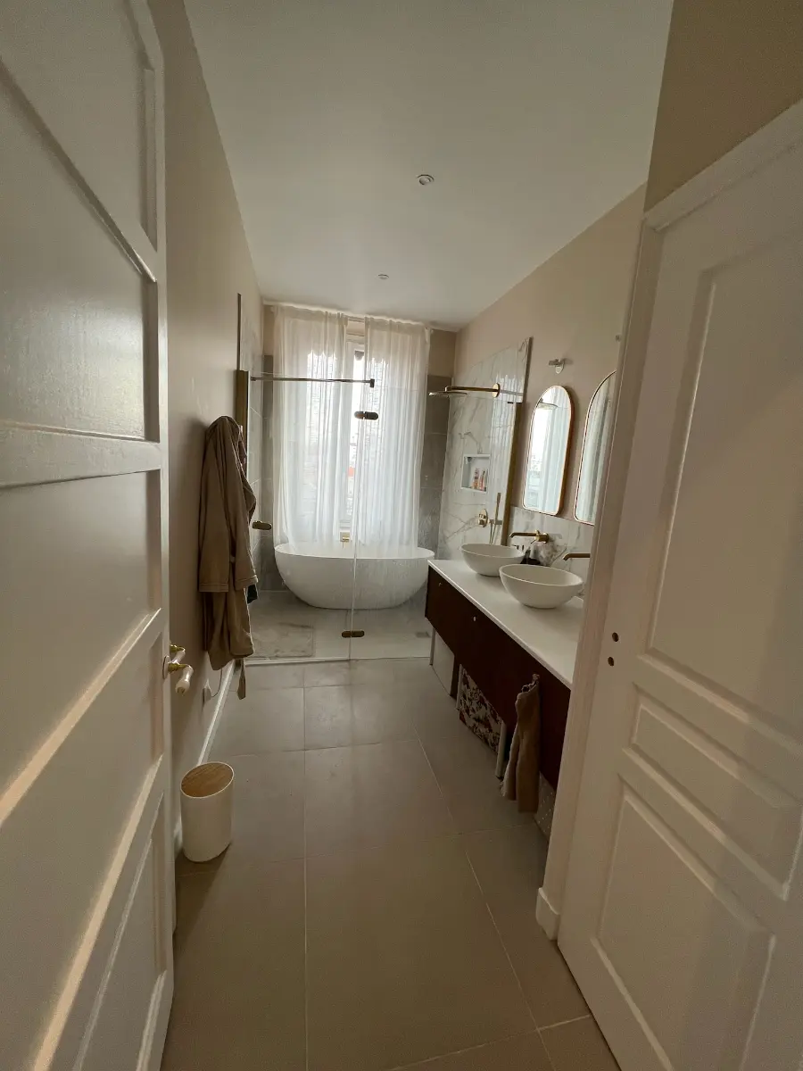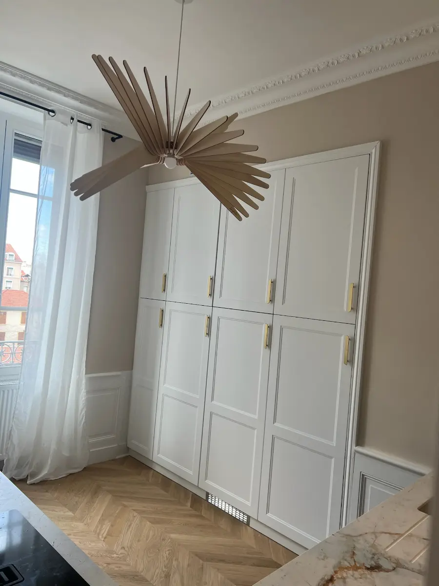 L’appartement a complètement changé d’atmosphère : plus clair, plus moderne, parfaitement fonctionnel. Les tons neutres choisis donnent une impression d’espace, et le nouveau sol homogène apporte une vraie cohérence entre les pièces. Nous avons procédé à la rénovation de chambres de l'appartement à Lyon 3 afin d'offrir à ces espaces de vie un nouveau souffle à travers des aménagements modernes, esthétiques et durables. Nous avons aussi mené la rénovation de la cuisine de cet appartement à Lyon 3, qui gagne en modernité et en luminosité. La salle de bain a également été rénové : notre équipe a accompagné le propriétaire dans la rénovation de la salle de bain de son appartement à Lyon 3. Résultat : l’espace est modernisé avec une nouvelle baignoire, une ambiance chaleureuse et des finitions soignées.