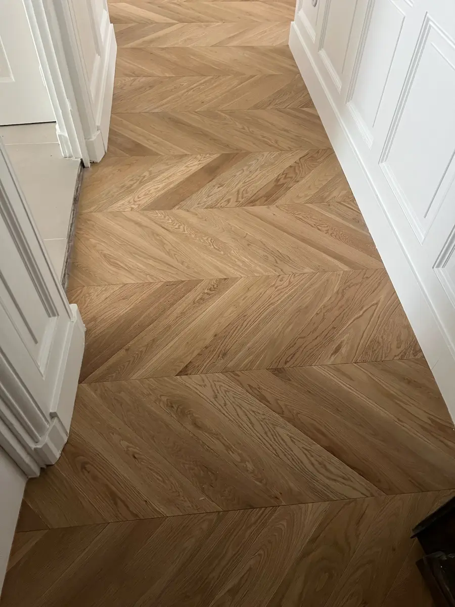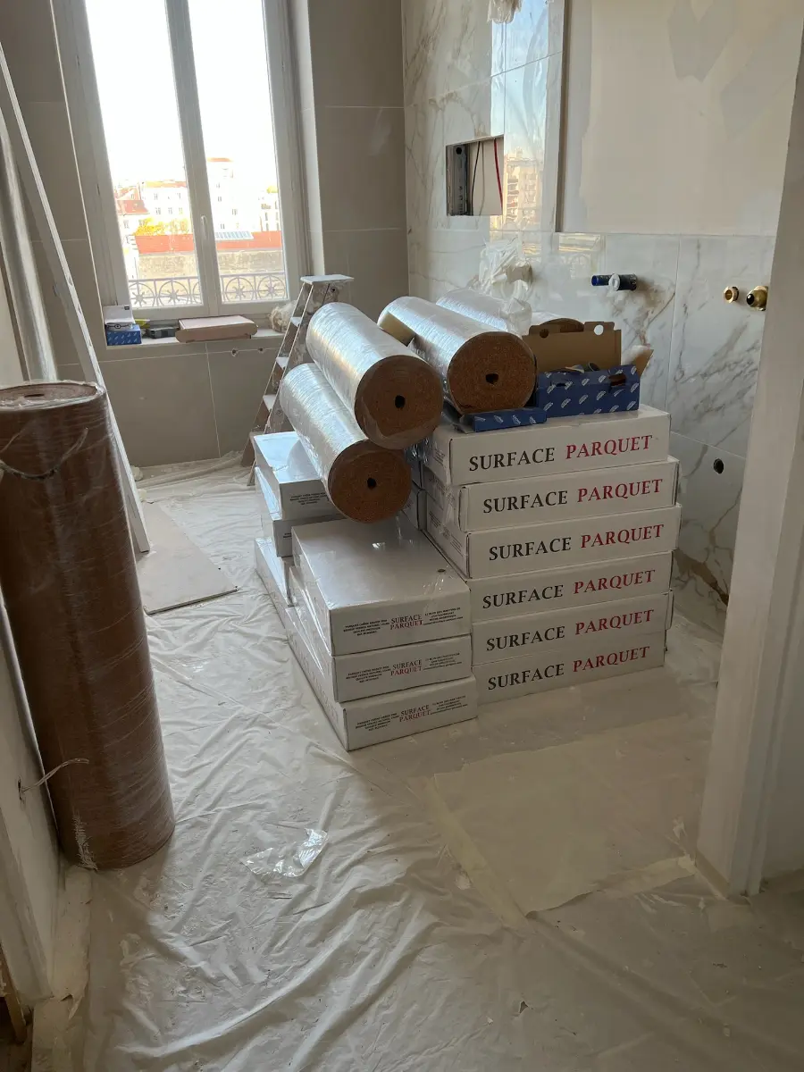 - Pose du nouveau sol stratifié, adapté aux pièces de vie.