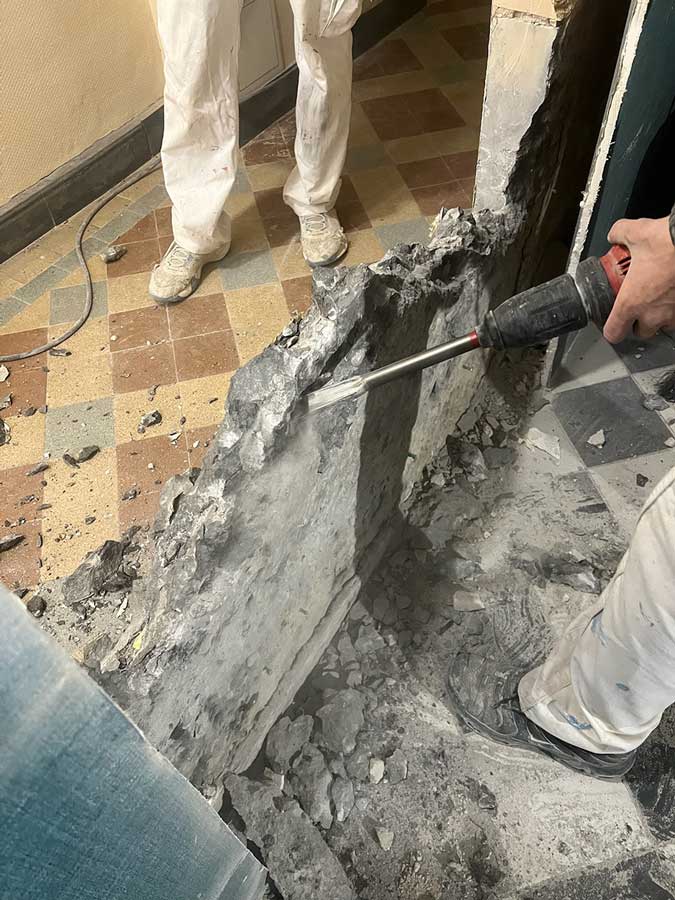 - Réalisation d’un cloisonnement d’une épaisseur de 15 cm